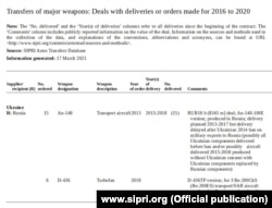 Те, що SIPRI зараховує як експорт озброєнь із України до Росії, стає ясно, коли скористатися базою даних інституту про враховані ним оборудки. І за згаданий період 2016–2020 року між Україною і Росією їх перелічено дві.